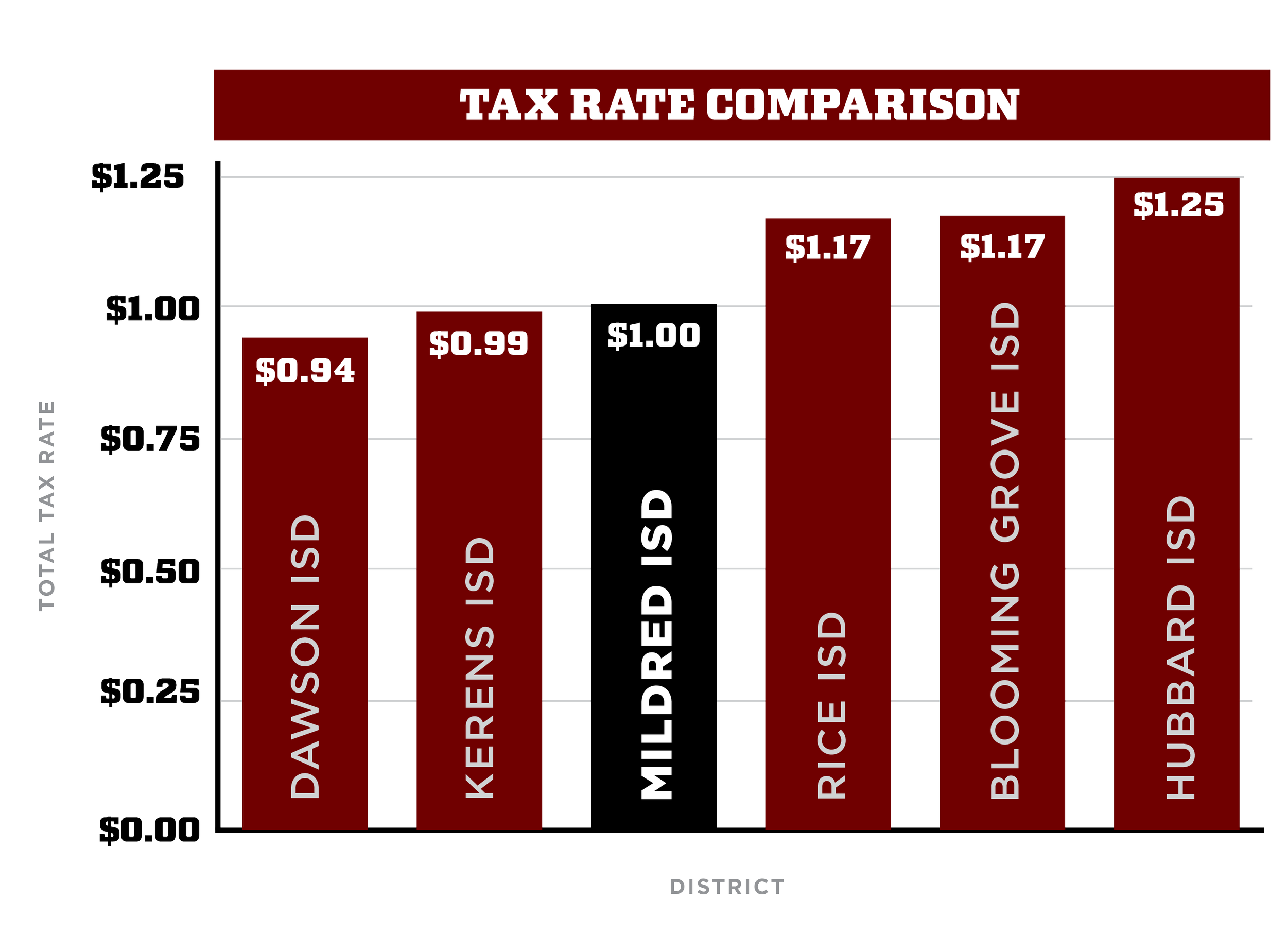 Mildred ISD tax rate compared to surrounding districts.